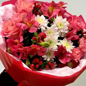 Букет с розами и альстромерией «Малина»
