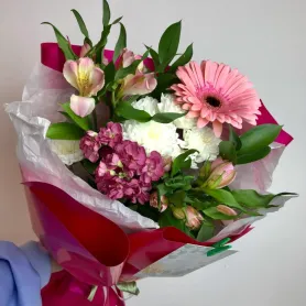 Букет «Мозаика» подарит тепло и радость , наполняя пространство цветочной гармонией.