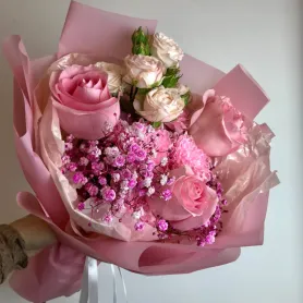Букет с розами «Фламинго»