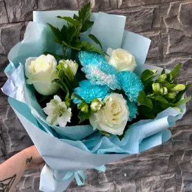 Букет с кустовой хризантемой «Лед» — эффектное решение для любого повода.