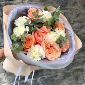 Букет «Вдохновение» — сочетание элегантных роз и нежных диантусов, дополненное свежестью эвкалипта. Этот букет станет идеальным подарком для тех, кто ценит красоту и гармонию в каждом цветке. Создайте особое настроение с помощью изящного и стильного букета, насыщенного вдохновением и теплом.