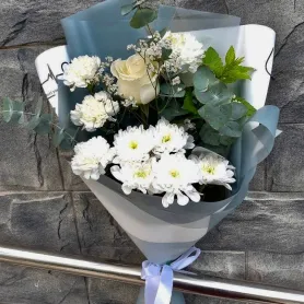 Букет «Холодная вода» — изысканное сочетание цветов, создающее атмосферу свежести и спокойствия.