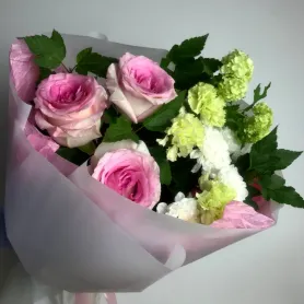 Букет с розами и диантусами «Гармония»