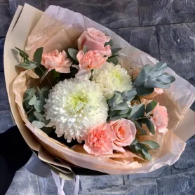 Мягкие персиковые оттенки создают уютную атмосферу и прекрасно подчеркнут особый момент. Этот букет подчеркнет вашу заботу и внимательность к деталям.