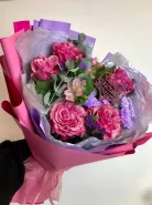 Букет с пионовидными розами «Ветер перемен» — это изящное сочетание розовых и фиолетовых оттенков.