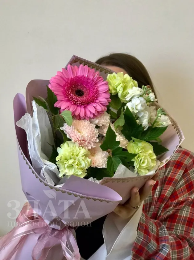 Все филиалыБукет с герберой и диантусами «Тайна тропиков»