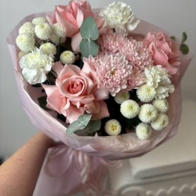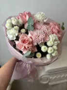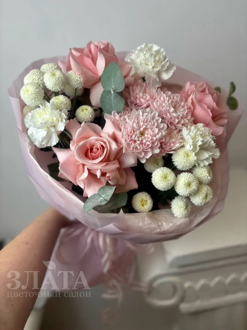 Букет с французской розой «Шепот любви» — это изысканное сочетание нежных оттенков и утонченной эстетики.