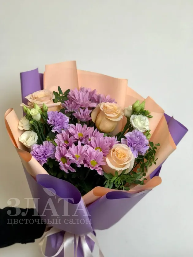 Подарите особое настроение с букетом «Черника-персик», созданным для тех, кто ценит красоту и утонченность.