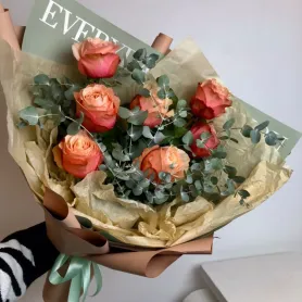 Монобукет 7 роз эвкалипом