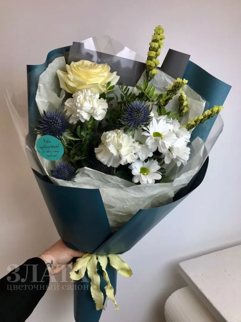 Букет с розой «Сад мечты» — поистине волшебное сочетание цветов, создающее атмосферу уюта и романтики.