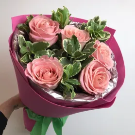 Монобукет 5 роз с зеленью