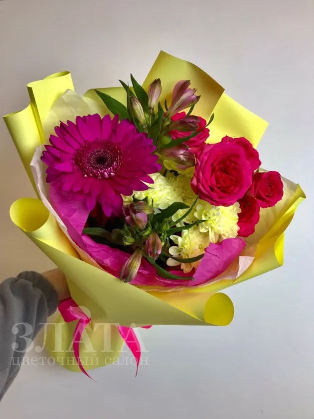 Все филиалыБукет с герберой «Палитра счастья»
