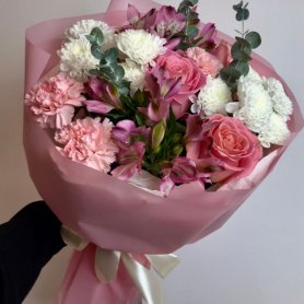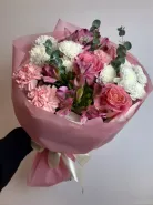 Все филиалыБукет с розами и диантусами «Розовые мечты»