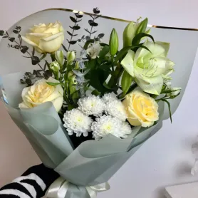 Букет «Белый шелк» — это изысканное сочетание элегантных цветов, созданное для особых моментов.