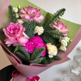 Букет «Зимняя сказка» сочетает в себе элегантность и нежность зимних пейзажей. В его состав входит изысканный нобилис, добавляющий нотки утонченности и стойкости. пышным. В целом, этот букет станет достойным украшением зимнего праздника или подарком для любимых людей.