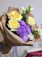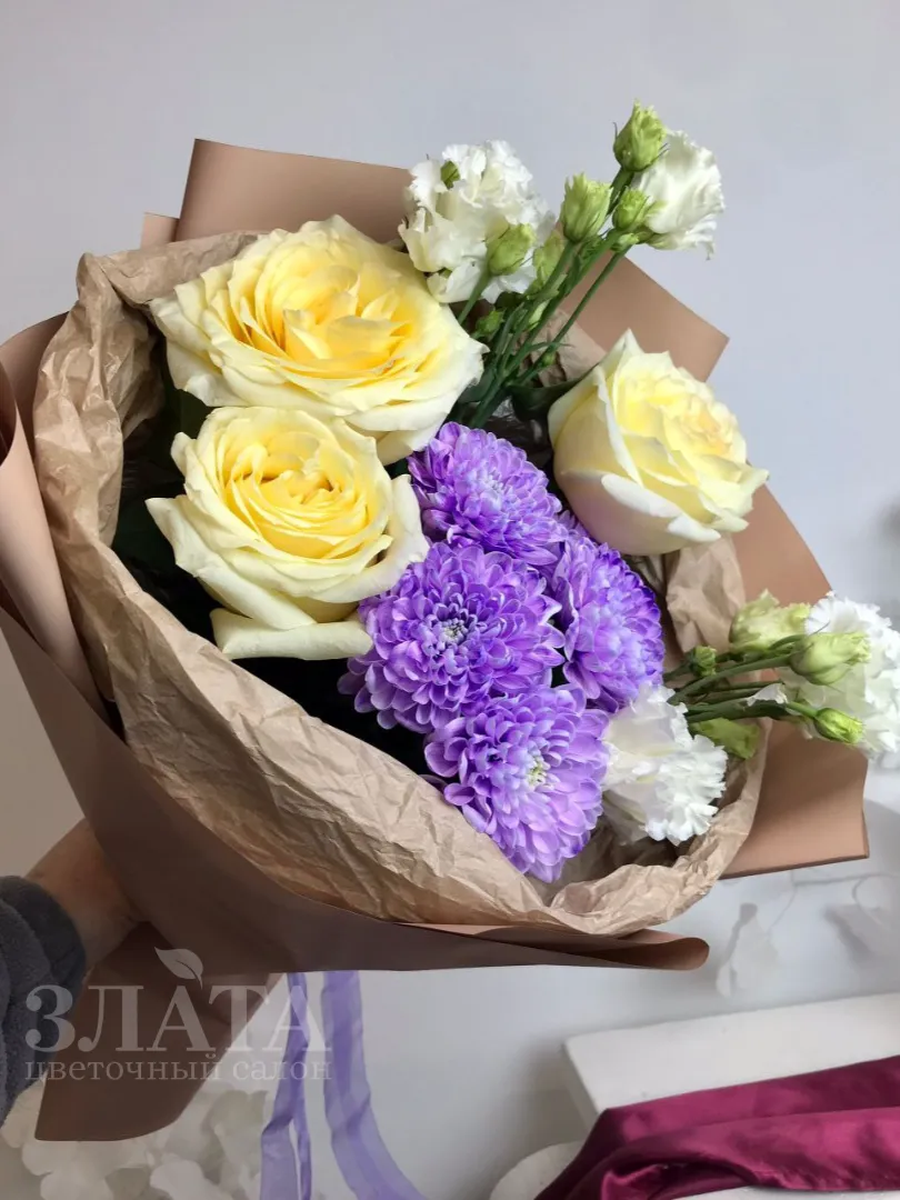 Букет с розами «Совершенство» станет идеальным подарком для выражения любви и признательности. В его состав входят изящные эустома и хризантема кустовая, которые дополняют классическую красоту роз.