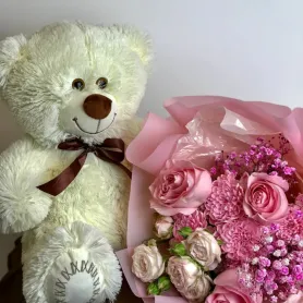Сборный букет и мишка 50см №2