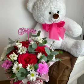Сборная композиция в коробке и мишка 90см №2