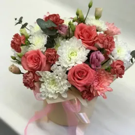 Композиция с розами и эустомой «Вдохновение»