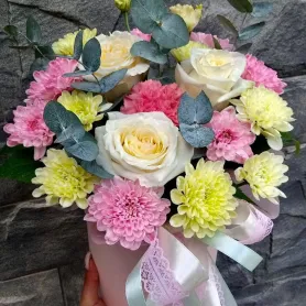 Композиция из хризантем и роз «Кенди»
