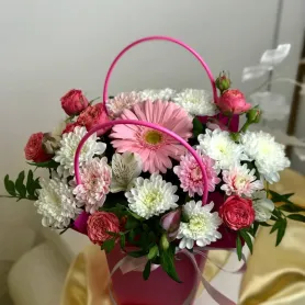 «Маленькая принцесса» — элегантная композиция с яркими герберами и изысканной розой, созданная для особых случаев.