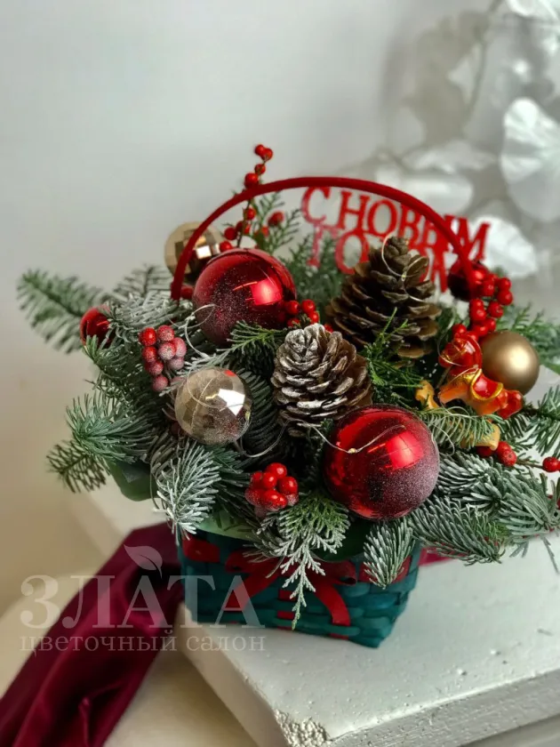Закажите «Новогоднюю композицию в корзине» и создайте волшебную атмосферу уже сегодня!