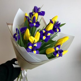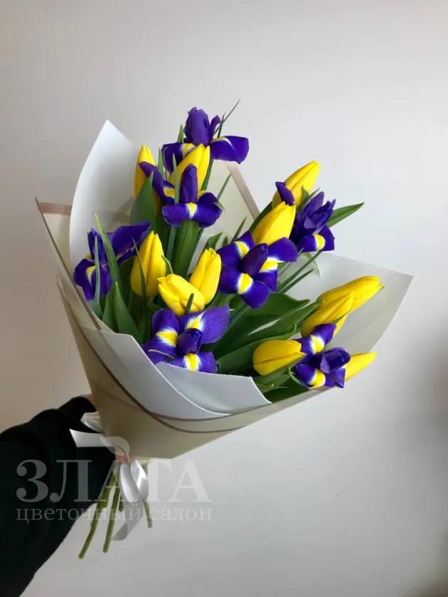 Весенний букет из тюльпанов и ирисов
