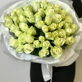 Моно-букет 51 белая роза Кения 35см